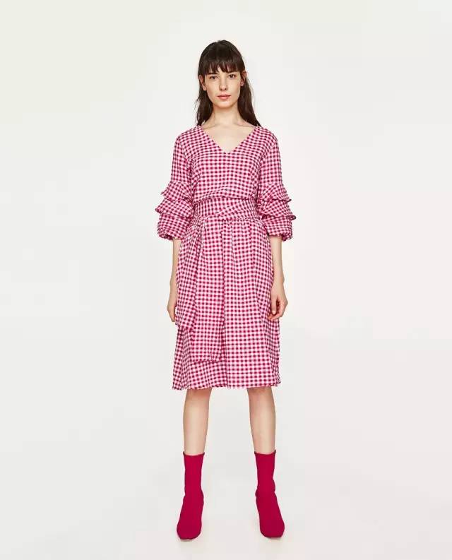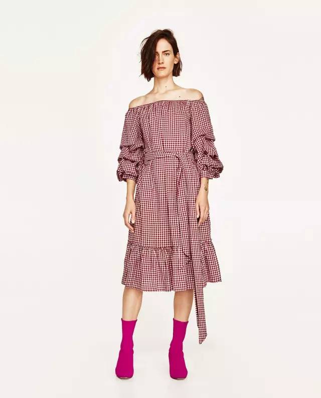 今年春夏十分流行這種小格紋花色的設計單品,Zara推出的這幾款帶著法式風格的洋裝,簡約典雅的設計讓每個女性更增添一份柔美氣質,除了傘狀設計的短洋裝,或是微性感的露肩荷葉邊設計,都十分有女人味。帶著復古感的荷葉摺袖也令人一眼就好喜歡,下午時分的咖啡廳約會,最適合穿搭上這麼一件小格紋洋裝。